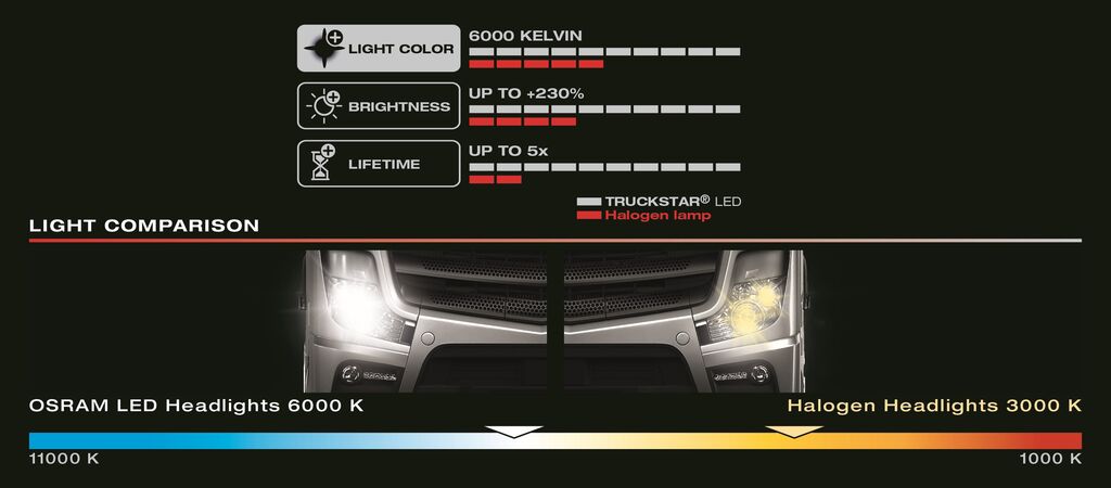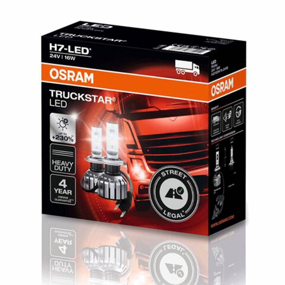 Osram TRUCKSTAR H7 LED +230 % 24V sú revolučné LED autožiarovky určené pre profesionálnych vodičov nákladných vozidiel, autobusov a úžitkových vozidiel, ktorí hľadajú maximálny svetelný výkon, spoľahlivosť a dlhú životnosť. Vďaka najmodernejšej LED technológii ponúkajú až o 230 % vyšší jas v porovnaní so štandardnými halogénovými žiarovkami, čím zaručujú vynikajúcu viditeľnosť a bezpečnosť aj v náročných podmienkach nočnej jazdy.