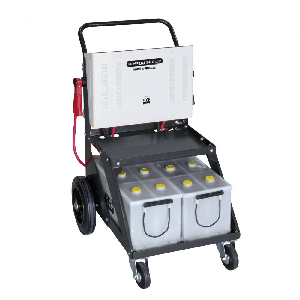 Profesionálne mobilné, štartovacie zariadenie GYS ENERGY STATION s vysokým štartovacím výkonom. Určené pre štartovanie vozidiel s autobatériami 12/24 V. Po pripojení do štartovacieho okruhu vozidla je možné štartovať vozidlo s kapacitou autobatérie do 160 Ah (max. Do cca 240 Ah). Zariadenie je vybavené ochranou proti zapojenie s obrátenou polaritou a samostatným nabíjacím zariadením, pre dobíjanie vlastných autobatérií 2 x 120 až 140 Ah (autobatérie nie sú súčasťou zariadenia). Štartér má vlastný podvozok. Nabíjačka autobatérií je napájaná jednofázovým napätím 230 V a je s ním možné nabíjať aj externé autobatérie.
