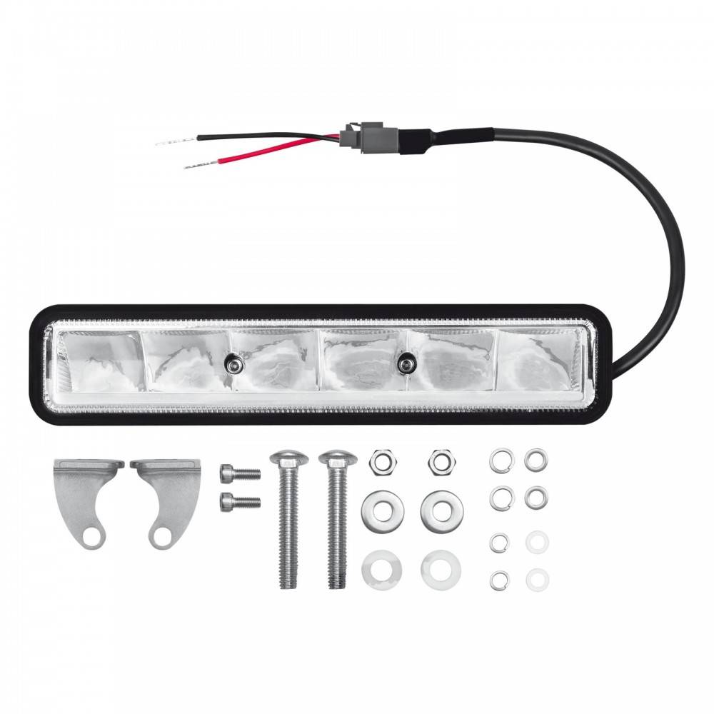Osram LEDriving Ligthbar SX180 LEDDL105-SP má pracovné svetlo 12/24V 14W s homologizáciou ECE a môže sa preto používať v cestnej premávke. Osram LED svietidlo Ligthbar SX180 LEDDL105-SP je možné namontovať v pároch na auto. Osram LEDriving Ligthbar SX180 LEDDL105-SP svetlo má bodové zrkadlo, ktoré vám umožní dosiahnuť maximálnu intenzitu svetla na ceste vpredu až do 190 metrov. Perfektná voľba pre ďalšie, dlhotrvajúce svetlo. LED svietidlá LIGHTBAR SX180-SP sú súčasťou série Slim. Tento výrobok je určený ako pomocné diaľkové svetlá, ktoré sú v súlade s ECE a sú konštruované v obzvlášť tenkom prevedení a vyznačujú sa zvýšeným osvetlením na diaľku. Tri bodové lúče sa líšia svojím rozsahom svetelného lúča až do 190 metrov. LED svetlá v studenej bielej farbe vytvárajú intenzívne svetlo až do 6000 Kelvinov a sú dostupné pre 12 a 24 voltové vozidlá. Produkty sú navrhnuté v robustnom a kompaktnom prevedení s dlhou životnosťou až 5000 hodín v dôsledku integrovaného systému riadenia a riadenia teploty. Vďaka extrémne robustnej polykarbonátovej šošovke sú tieto svetla odolné voči vonkajším vplyvom počasia ( prach, dážď , sneh, vysoké teploty..) a majú viacnásobnú ochranu pred napätím.
