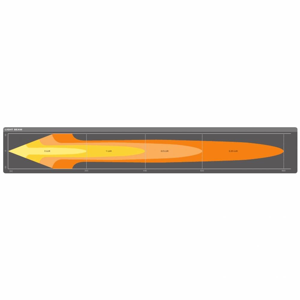 Vylepšené osvetlenie na diaľku na temných vidieckych a prašných cestách – pre LEDriving Lightbar FX500-CB to nie je žiadny problém. Jeho 20 intenzívnych, vysoko výkonných LED diód dáva LED svetelnému lúču dĺžku až 440 metrov a zaisťuje zvýšenú bezpečnosť cestnej premávky pre vodiča. Aj za súmraku alebo za zhoršených svetelných podmienok poskytujú LED diódy pre automobily podmienky denného svetla bez zbytočného oslnenia protiidúcich. Inteligentná konštrukcia reflektora odráža svetlo LEDiek, takže priestor je osvetľovaný nepriamym svetlom. Svetlo je rovnomerne rozložené v uhle piatich stupňov.